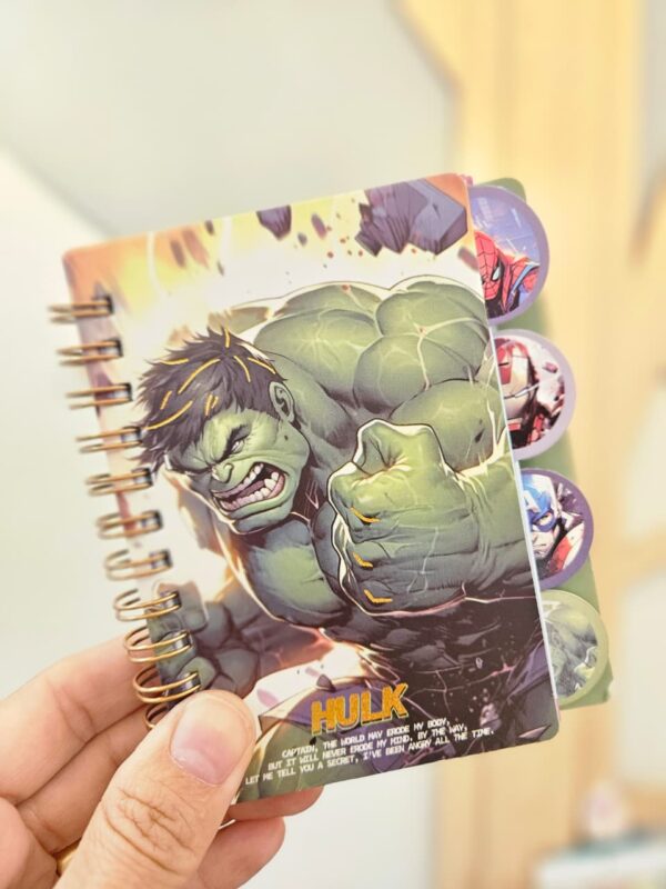 Organização e estilo para o dia a dia! A caderneta espiral com tema super-heróis é perfeita para quem gosta de manter tudo anotado com personalidade e praticidade. Com design inspirado no universo dos heróis, ela traz um visual moderno e cheio de atitude. Possui divisórias internas que facilitam a organização por temas, matérias ou categorias, tornando o uso ainda mais funcional. As folhas decoradas deixam cada anotação mais divertida, ideal para estudos, trabalho ou uso pessoal.