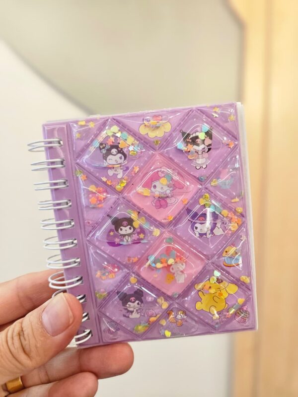 Prática, divertida e cheia de estilo! A caderneta mini espiral Acqua da Hello Kitty é perfeita para quem ama papelaria criativa e cheia de charme. Com tamanho compacto, é ideal para levar na bolsa, mochila ou estojo, sendo perfeita para anotações rápidas, recados ou desenhos. Seu grande diferencial é a capa dura com reservatório de água e glitter, que cria um efeito interativo super divertido ao movimentar. Além disso, conta com folhas decoradas e adesivos exclusivos, tornando a experiência ainda mais especial e personalizada.