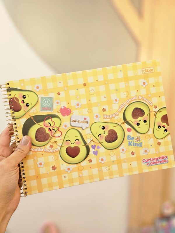 O caderno de desenho Tilibra tem capa dura com visual adorável e irresistível da papelaria fofa, espiral, folha de adesivos e 80 folhas brancas para liberar a imaginação. Adquira já o seu!