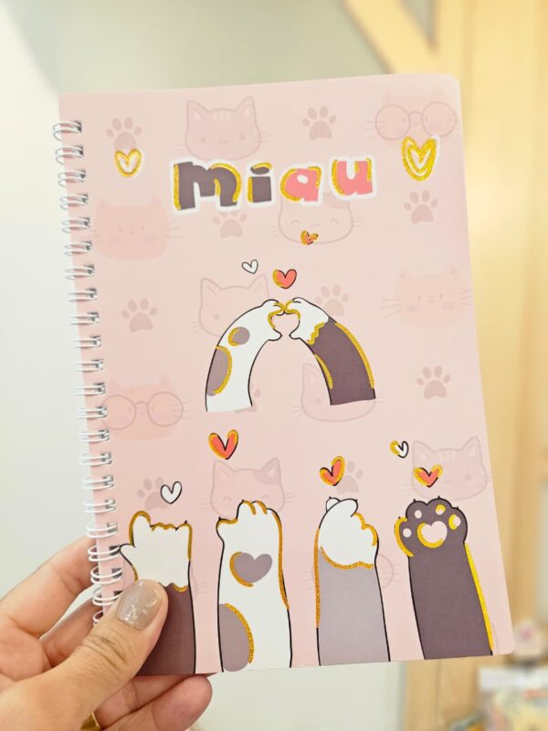 O Caderno de Anotações Gatinhos Fofos é perfeito para quem ama papelaria delicada e cheia de personalidade. Com capa ilustrada com gatinhos fofos, ele traz um visual encantador que deixa o momento de escrever ainda mais especial. Com tamanho A5, é compacto e prático para levar na mochila, bolsa ou deixar sempre por perto para registrar ideias, lembretes, listas e anotações do dia a dia. Possui 58 folhas que oferecem espaço ideal para organizar suas informações com praticidade. O sistema de encadernação em espiral facilita o manuseio das páginas, permitindo abrir o caderno com mais conforto durante o uso.