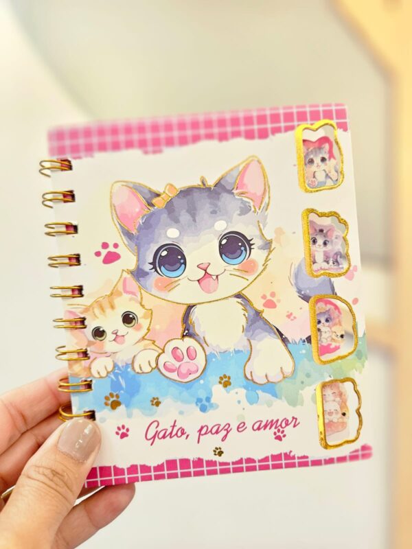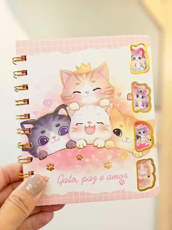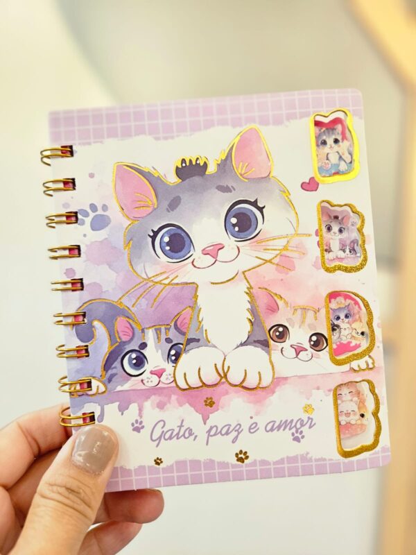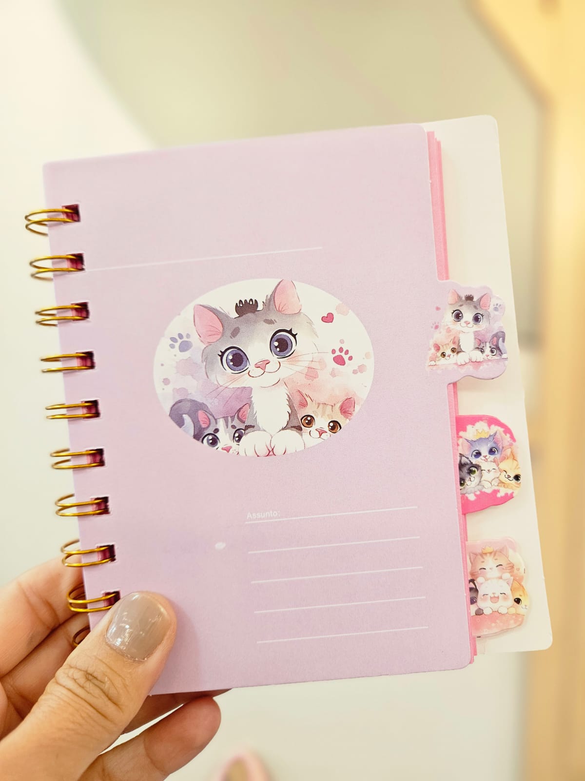 Caderno de Anotações Espiral Pequeno 80 Folhas Gatinhos Fofos