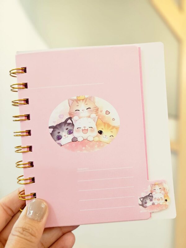 O Caderno de Anotações Gatinhos Fofos é perfeito para quem ama papelaria delicada e cheia de personalidade. Com capa ilustrada com gatinhos fofos, com acabamento metalizado, ele traz um visual encantador que deixa o momento de escrever ainda mais especial. Com tamanho 10X14,1 cm é compacto e prático para levar na mochila, bolsa ou deixar sempre por perto para registrar ideias, lembretes, listas e anotações do dia a dia. Possui 80 folhas coloridas e decoradas que oferecem espaço ideal para organizar suas informações com praticidade. Esse caderninho fofo também possui 4 lindas divisórias coloridas e divertidas sempre no tema de gatinhos! O sistema de encadernação em espiral facilita o manuseio das páginas, permitindo abrir o caderno com mais conforto durante o uso.