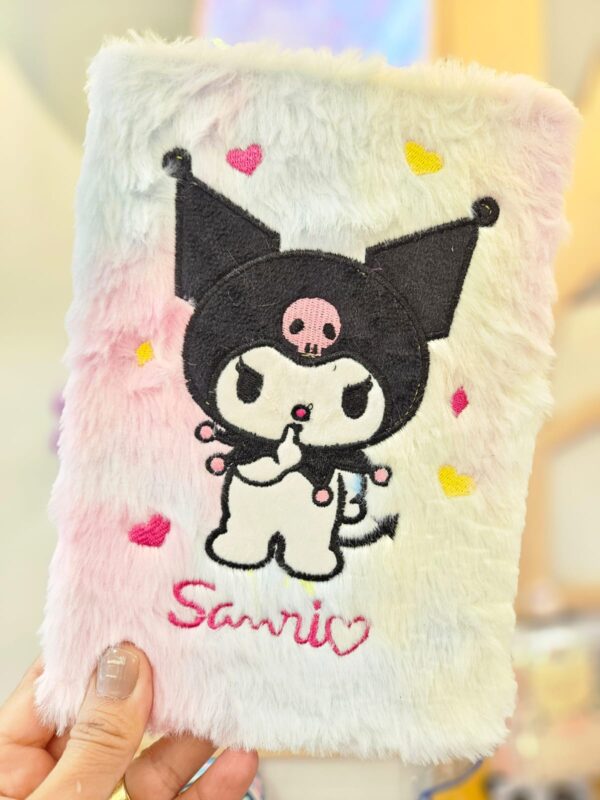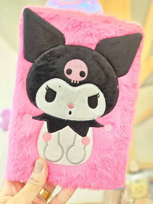 Caderno de Anotações Pequeno Bordado Pelúcia 80 Folhas Sanrio Kuromi