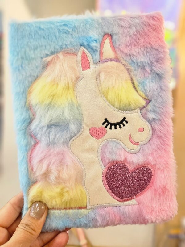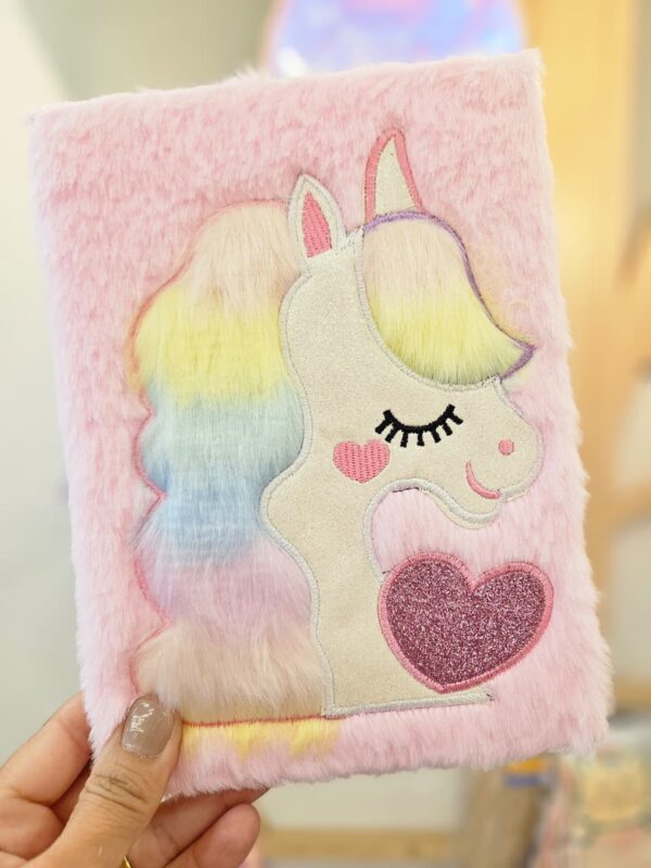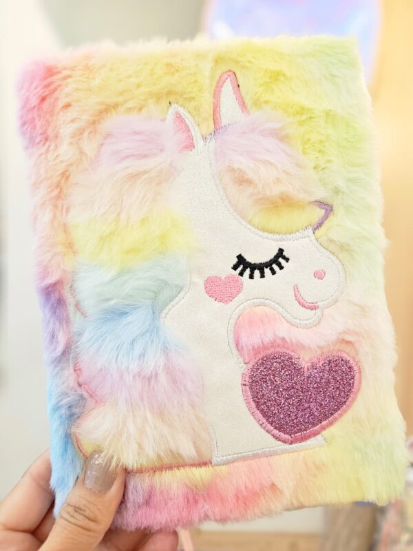 Caderno de Anotações Pequeno Bordado Pelúcia 80 Folhas Unicórnio