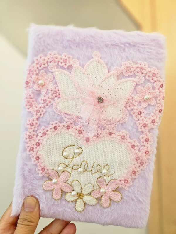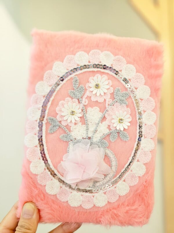 Caderno de Anotações 20,5×13,9cm com 78 Folhas Pelúcia Bordado