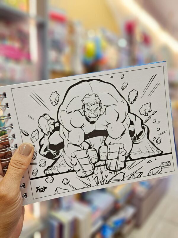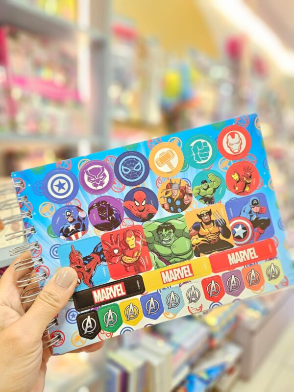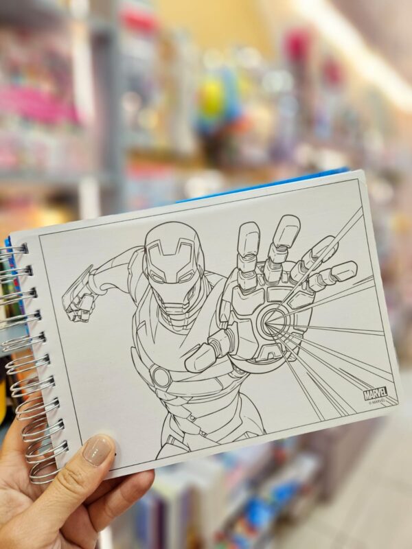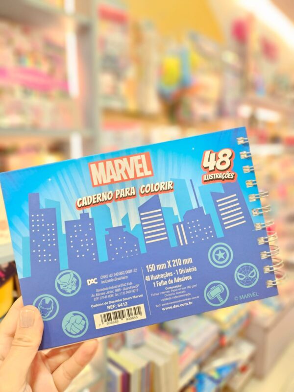 O Caderno de Colorir Avengers da DAC traz toda a ação e aventura dos heróis da Marvel para a rotina criativa. São 48 folhas ilustradas em papel 180g, perfeitas para colorir com qualidade. O sistema inteligente permite reposicionar as paginas, e a cartela com 30 adesivos exclusivos dos Vingadores completa a experiência. O caderno dispõe ainda de uma folha de acetato para serem posicionadas sob cada desenho a ser colorido, de modo que não manchem as páginas sucessivas.