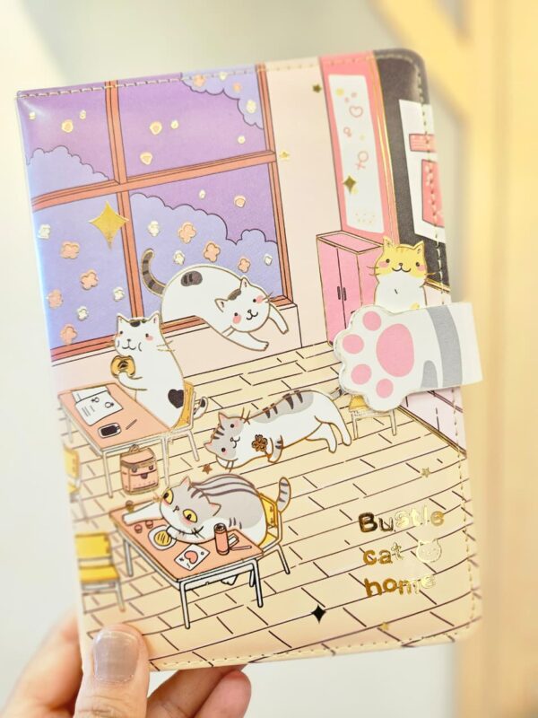 O Caderno Fofo Gatinho Bustle Cat Home com Fecho é perfeito para quem ama papelaria criativa e cheia de personalidade. Com ilustrações encantadoras de gatinhos, ele traz um visual divertido e delicado que deixa qualquer momento de escrita muito mais especial. Suas 112 folhas possuem páginas decoradas com diferentes formas e estilos, repletas de gatinhos fofos e detalhes alegres que tornam o caderno ideal para anotações, diário, desenhos ou planejamento do dia a dia. O fecho imantado prático ajuda a manter as páginas protegidas e tudo organizado. Compacto e charmoso, é uma ótima opção para levar na bolsa, usar na escola, no trabalho ou presentear quem ama itens de papelaria.