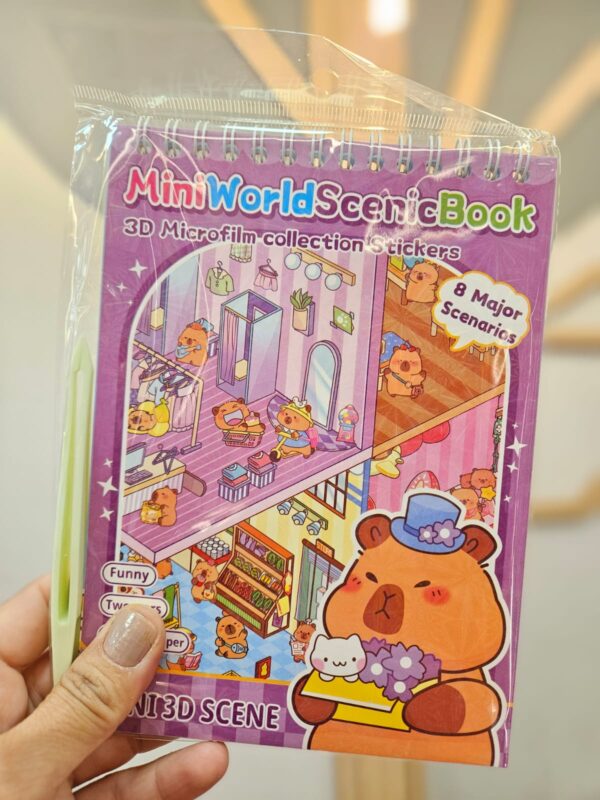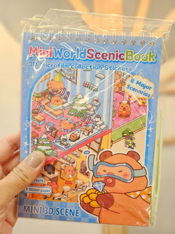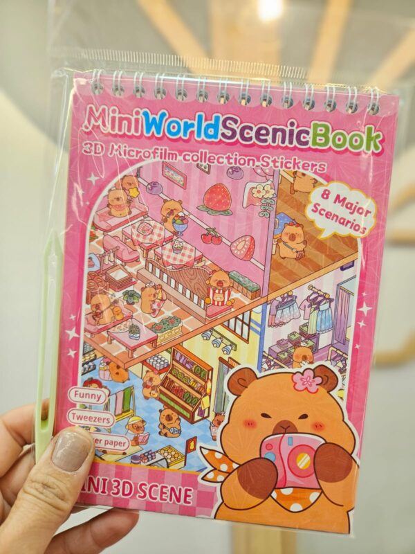 Caderno Interativo com Cenários 3D e Adesivos DIY 8 Cenários Divertidos Capivara