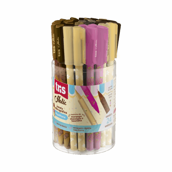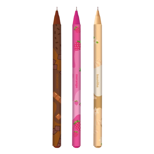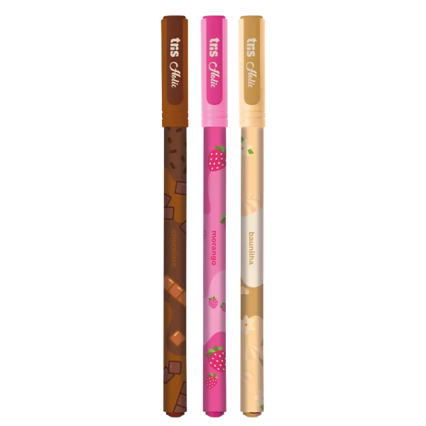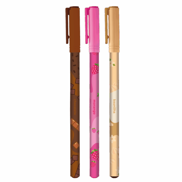 A Caneta Esferográfica Tris Napolitano é perfeita para quem ama a papelaria temática da coleção Docinhos. Inspirada nas três cores irresistíveis do sorvete, ela possui tinta colorida que corresponde à cor do corpo (Rosa, Marrom e Laranja) e tem um delicioso cheirinho de chocolate, morango ou baunilha. Com ponta fina de 0,7mm, oferece uma escrita macia e fluida para anotações doces e criativas.