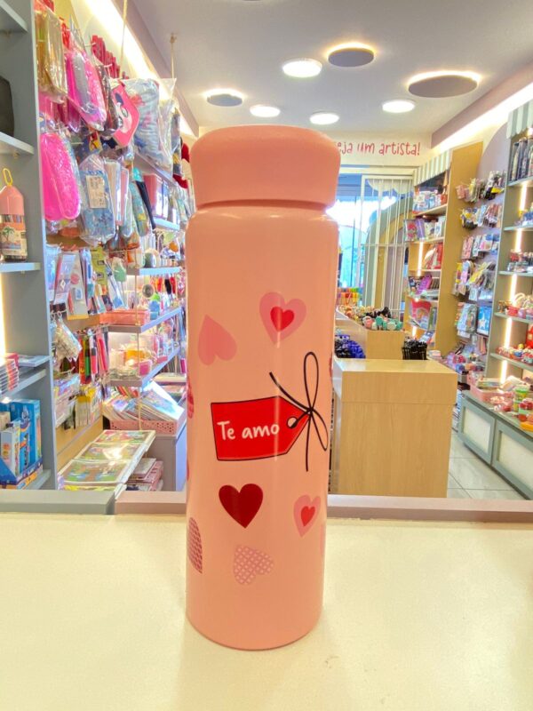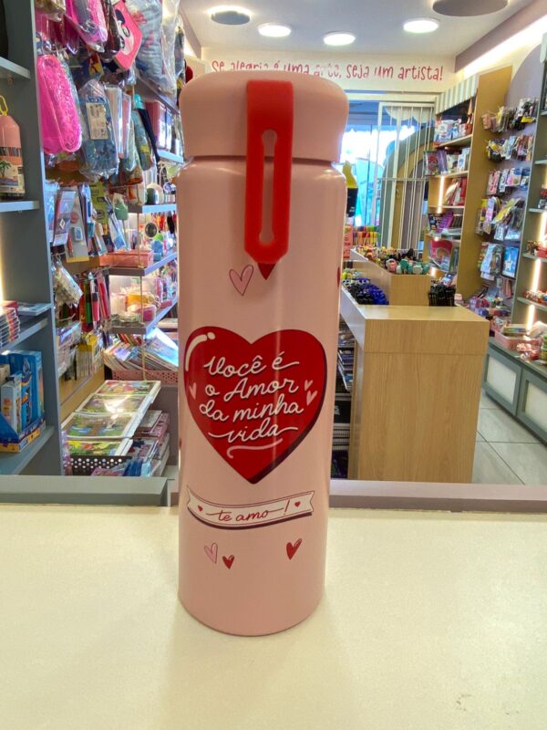 Garrafa de Alumínio com tampa rosqueável e alça, com capacidade para 600ml.