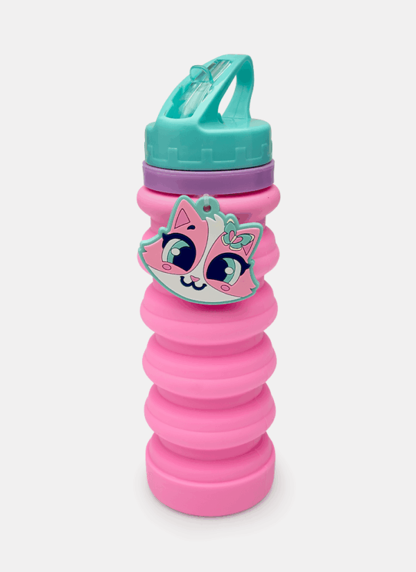Garrafa Dobrável Silicone Gata Sereia Rosa Puket