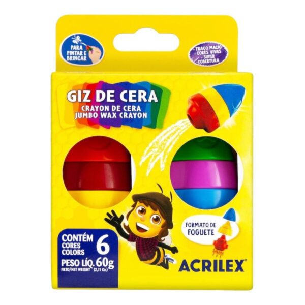 Giz de Cera Jumbo Foguete 6 Cores Acrilex