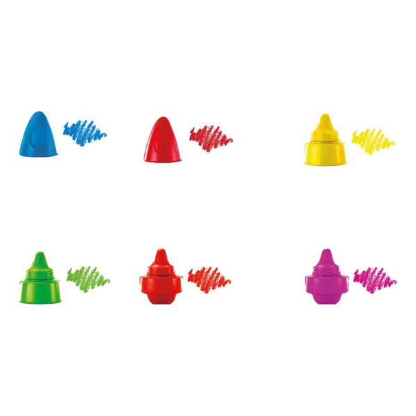Giz de Cera em formato de Foguete com 6 cores diversas com tonalidades vibrantes, uma ótima cobertura e toque macio!
