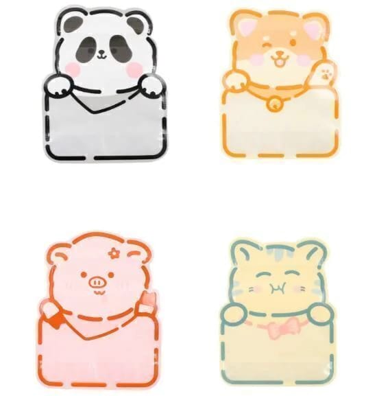 Cada kit inclui 4 saquinhos com estampas de animais: gato, cachorro, panda e porco.