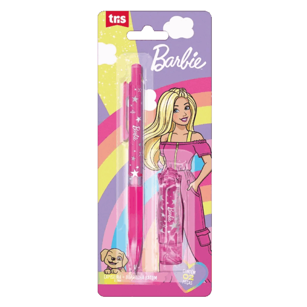 Com o KIT BORRACHA BATOM E LAPISEIRA 0.7MM ROSA/ROXO BARBIE TRIS, cada tarefa escolar ganha um toque fashion e alegre!