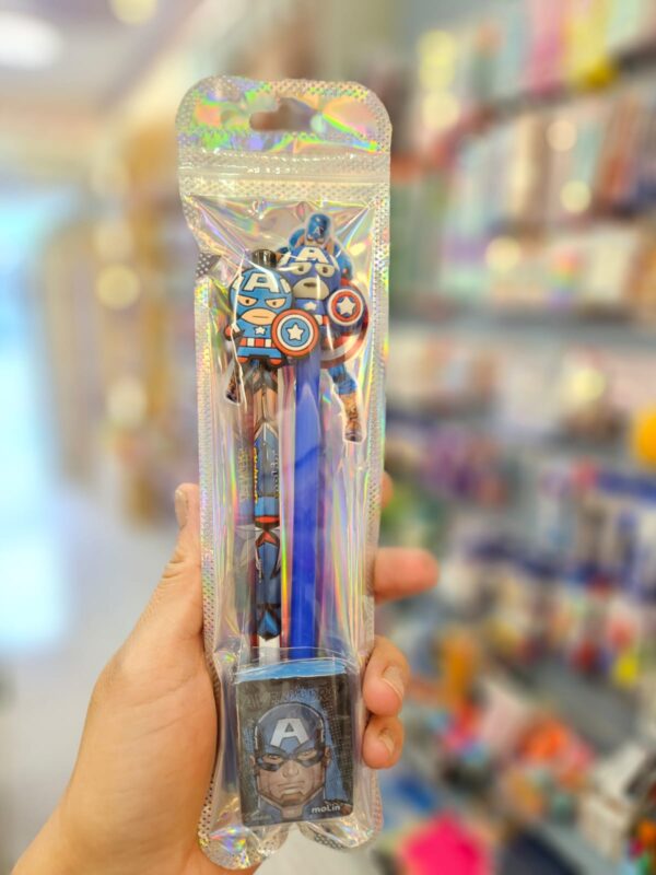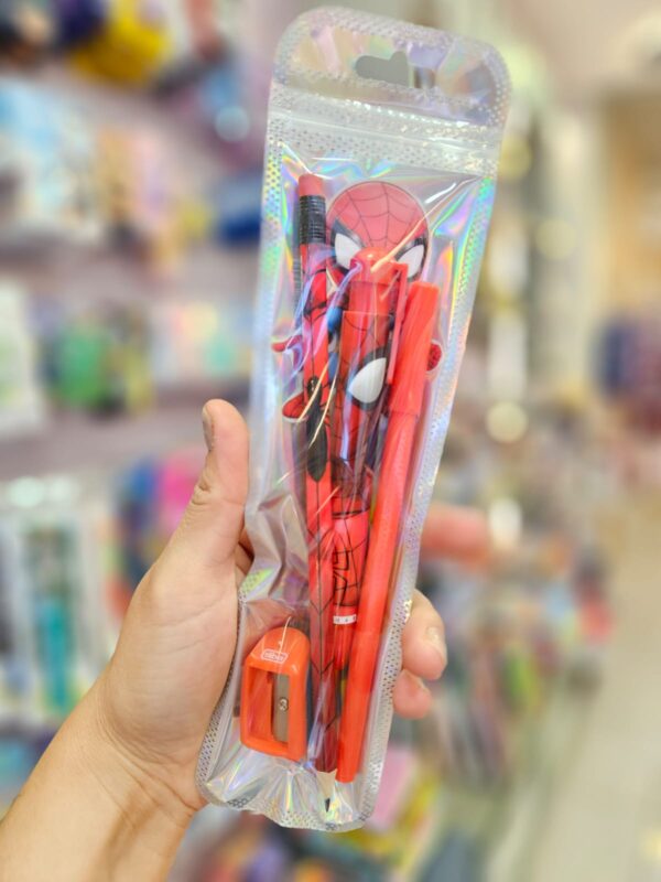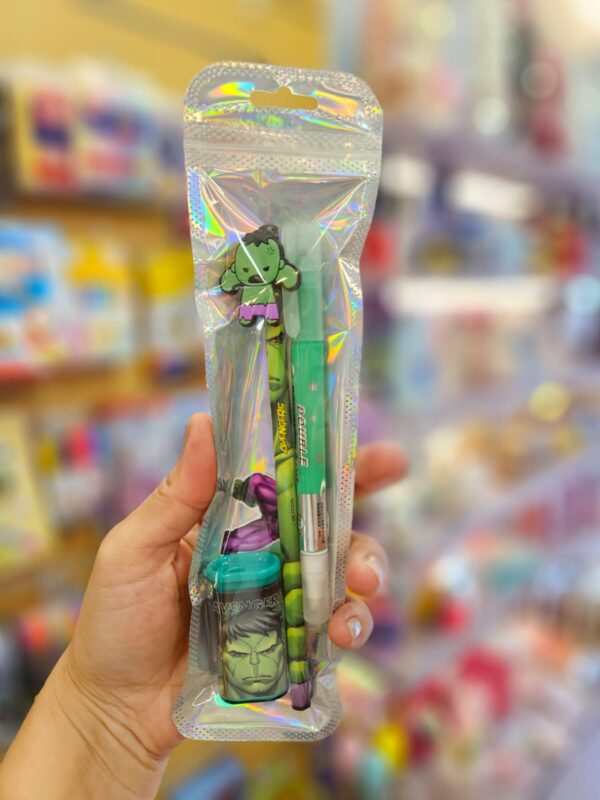 Os kits são sortidos e podem conter canetas, lápis, lapiseira, borracha, apontador, adesivos, marca-texto!