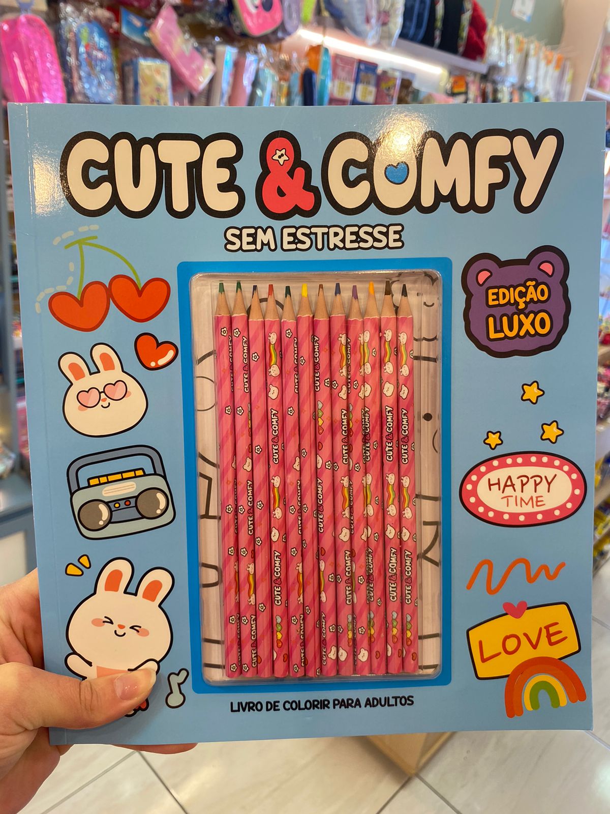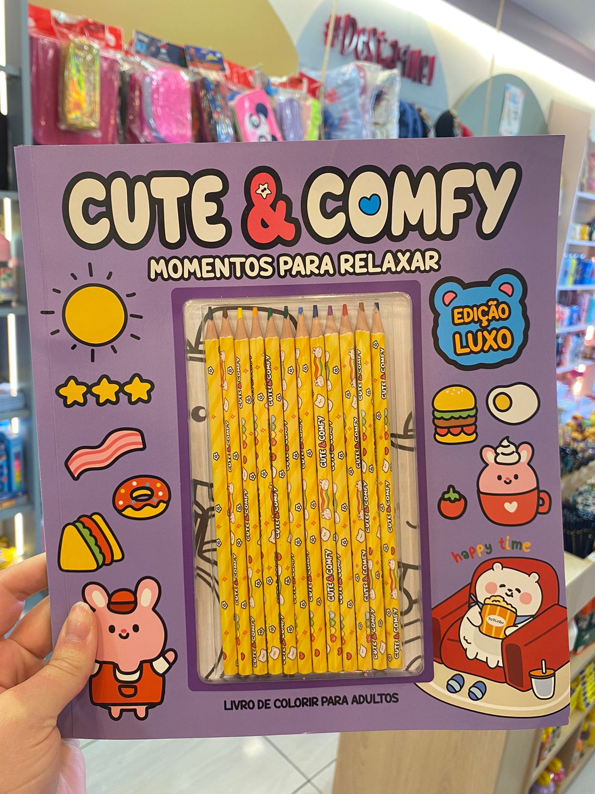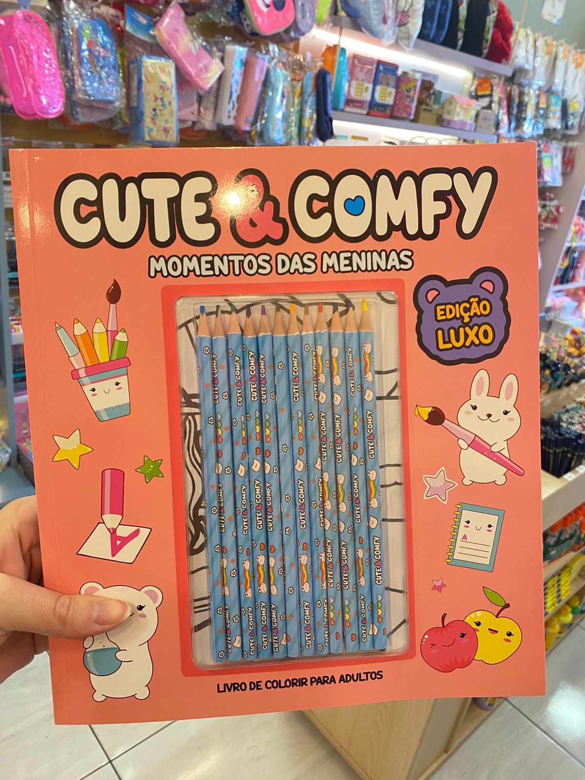 Livro Colorir Cute & Comfy + 12 Lápis de Cor.