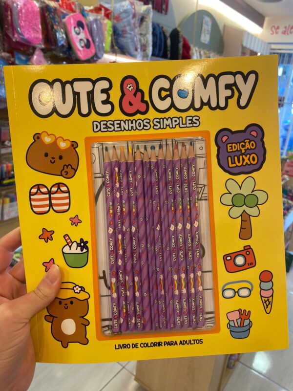 O livro de colorir Cute & Comfy traz ilustrações modernas e delicadas, perfeitas para momentos de relaxamento e autocuidado.