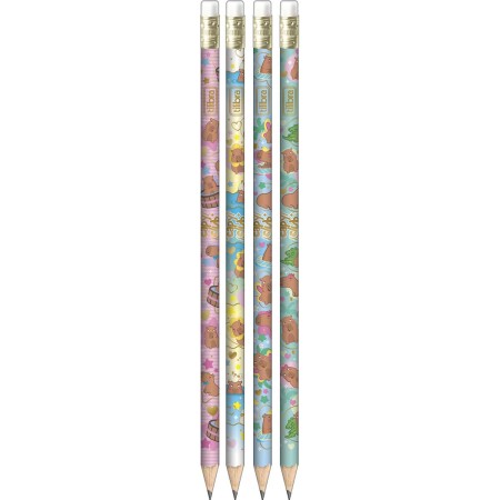 O Lápis Preto Redondo com Borracha nº2 CapyClub da Tilibra é fácil de apontar, resistente e possui um traço macio, ideal para escrita e desenhos. O produto tem comprimento de 190 mm e corpo redondo estampado na temática de capivaras fofas e divertidas, com borracha na ponta.