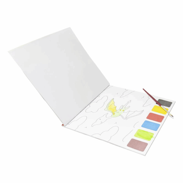 Acompanha 12 folhas, 1 pincel e 6 cores de tinta em cada página, que após finalizada a pintura, podem ser destacadas e descartadas, restando apenas o desenho finalizado!