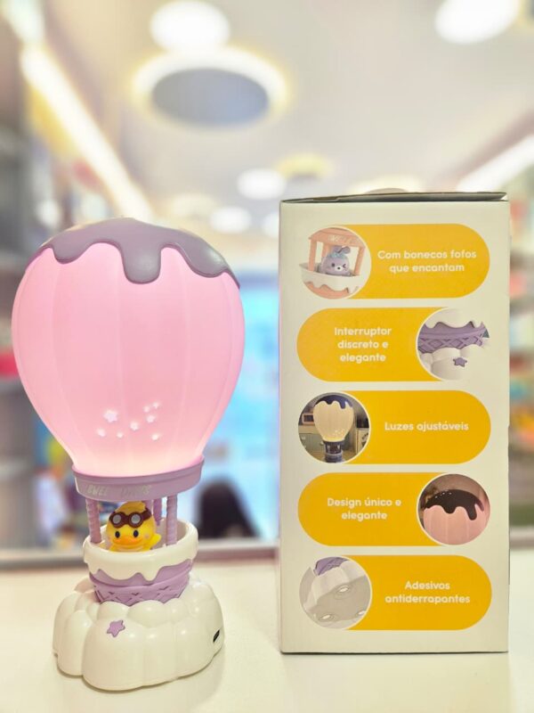 A Luminária de Mesa USB Balão Sweet Days une funcionalidade e um design encantador para deixar qualquer ambiente mais aconchegante. Inspirada no formato de um delicado balão, ela traz um toque lúdico e decorativo para quartos, escritórios e espaços de estudo. Possui 3 modos de iluminação ajustáveis, permitindo escolher a intensidade ideal para leitura, estudos ou iluminação suave noturna. O charmoso interruptor em formato de estrela adiciona ainda mais personalidade ao produto, tornando o uso prático e divertido. Como detalhe especial, a luminária conta com um bonequinho fofo acomodado na cestinha do balão, que deixa a peça ainda mais encantadora e perfeita para compor a decoração. Funciona via cabo USB (incluso), oferecendo praticidade para conectar em notebooks, computadores ou adaptadores de tomada.