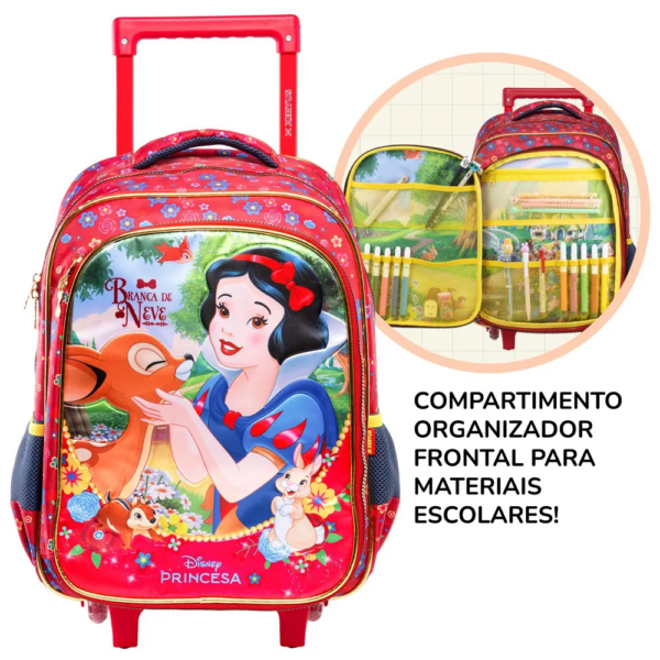 Mochila com Rodinha 40cm com Organizador Frontal Branca de Neve Disney Xeryus – Um Conto de Fadas para Acompanhar Cada Aventura!