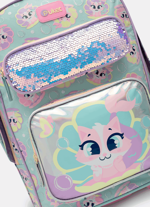 Mochila com Rodinha Grande Paetê Gata Sereia Puket