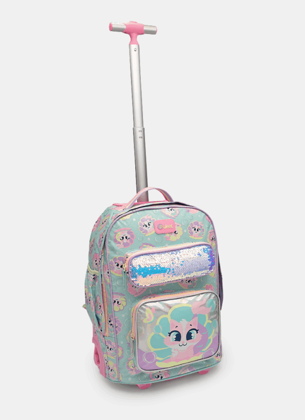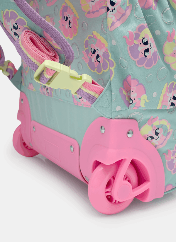 A mochila de rodinhas da Gata Sereia é a companheira perfeita para a rotina escolar, unindo um mundo de fantasia e brilho com a praticidade que as crianças precisam no dia a dia. Leve a magia do fundo do mar para a sala de aula! A Mochila de Rodinha Grande da Gata Sereia foi criada para transformar o caminho para a escola em uma aventura encantadora. Com uma estampa superfofa de gatinhas sereia em um fundo verde-água, ela parece ter saído de um sonho. E o toque especial? Um bolso frontal com paetês. É impossível não se apaixonar! Feita com carinho e atenção aos detalhes, esta mochila não é apenas linda, mas também superprática. Suas rodinhas deslizam suavemente, e o puxador com duas alturas se ajusta perfeitamente ao tamanho da criança, evitando que ela carregue peso nas costas. Com compartimentos espaçosos e bolsos organizadores, guardar o material escolar, o lanche e a garrafinha de água fica muito mais fácil e divertido. É a escolha ideal para garantir conforto, organização e um toque de alegria todos os dias!