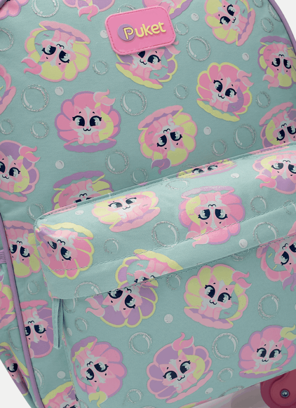 A Mochila com Rodinha Média Gata Sereia Verde Água Puket é perfeita para tornar a rotina escolar mais prática, confortável e cheia de encanto. Com estampa temática de Gata Sereia e cor verde água, ela traz um visual delicado e divertido que conquista no primeiro olhar. Confeccionada em nylon (poliéster) resistente, conta com compartimento principal espaçoso, bolso frontal médio e bolso lateral ideal para garrafinha, facilitando a organização dos materiais escolares. Seu sistema com rodinhas e haste com regulagem de altura proporciona mais praticidade no transporte, evitando o peso nas costas e garantindo mais conforto no dia a dia. Funcional e bem estruturada, é ideal para crianças que precisam de espaço e praticidade para a rotina escolar.