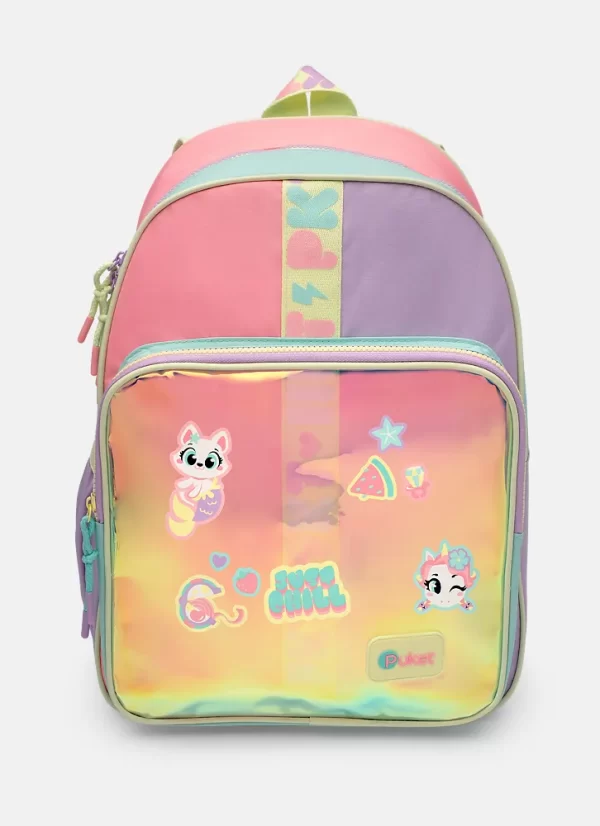 Mochila de Costas Grande Color Block Menina Rosa Puket